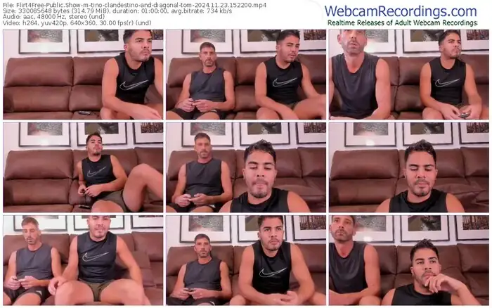 There are a total of 57 recordings (36 hours) of tino-clandestino-and-diagonal-tom from Flirt4Free available below.