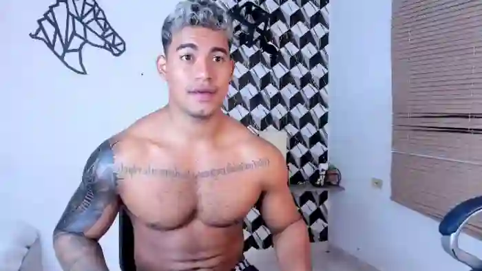 His birthday is May 23rd 2003 making him 22 years old, and the average age of models on Flirt4Free is 25—making him one of the younger models. His height is 175cm, and his weight is 80kg. He identifies his ethnicity as hispanic. He has a natural pubic hair, muscular body with brown eyes and short black hair.His body art includes piercings, tattoo(s).