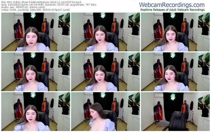 There are a total of 2,001 recordings (691 hours) of AdmireMyEyes from MyFreeCams available below.
