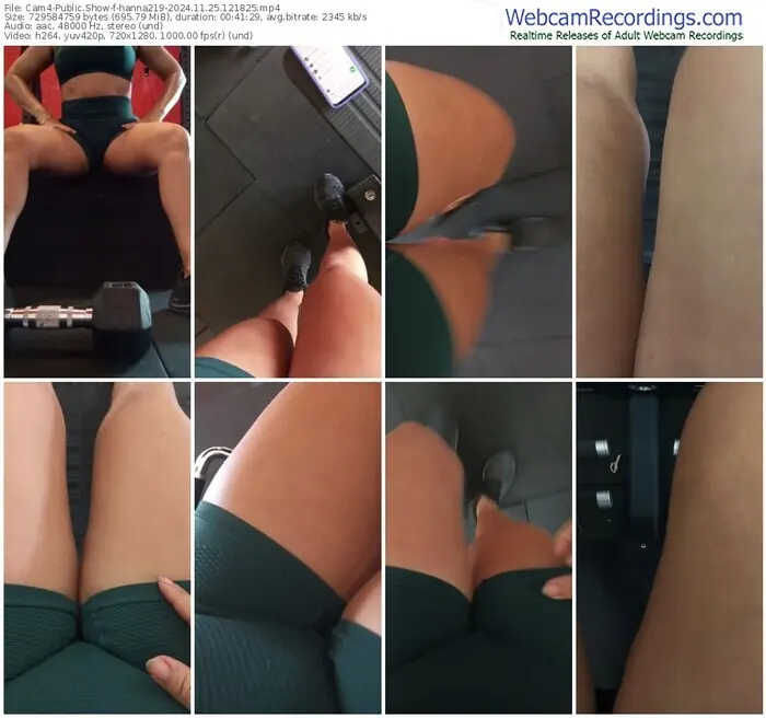 There are a total of 222 recordings (73 hours) of hanna219 from Cam4 available below.