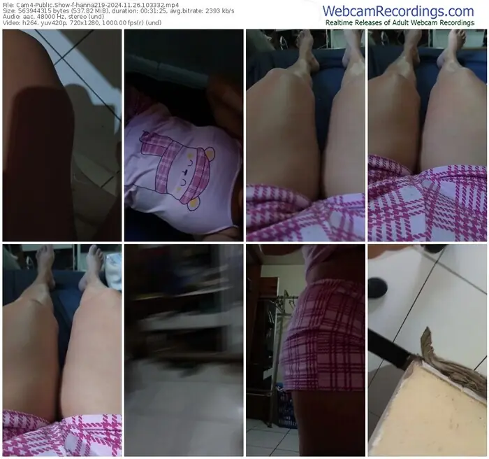 There are a total of 222 recordings (73 hours) of hanna219 from Cam4 available below.