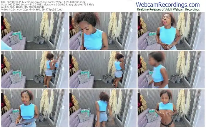There are a total of 3,732 recordings (1,512 hours) of michelle-flores from Flirt4Free available below.