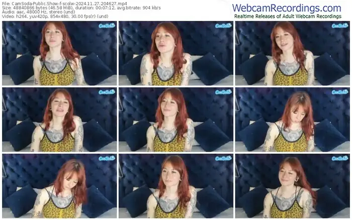 There are a total of 42 recordings (17 hours) of scolw from CamSoda and Stripchat available below.
