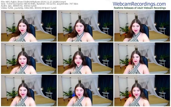 There are a total of 2,001 recordings (691 hours) of AdmireMyEyes from MyFreeCams available below.