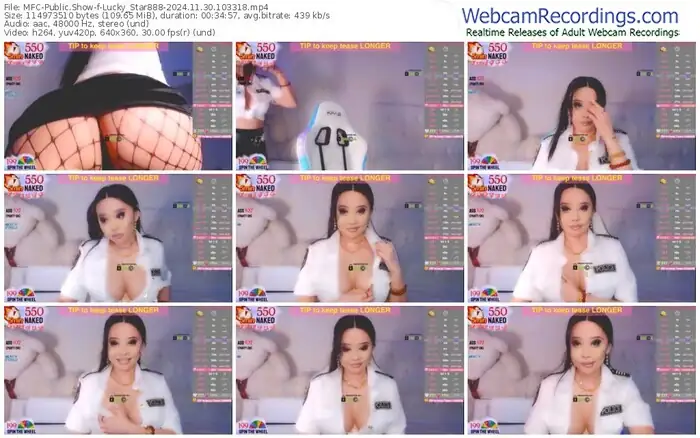 There are a total of 2,196 recordings (1,339 hours) of Lucky_Star888 from MyFreeCams available below.