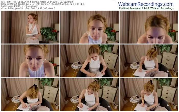 There are a total of 4 recordings (4 hours) of glenna-hatter from Flirt4Free available below.
