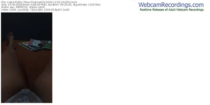 There are a total of 222 recordings (73 hours) of hanna219 from Cam4 available below.