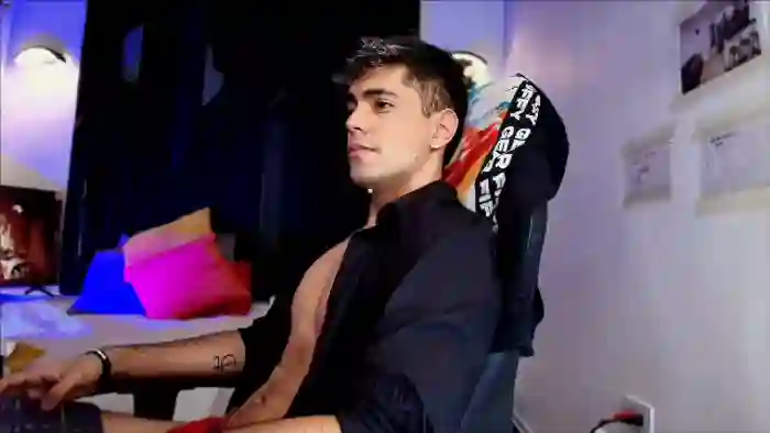 His birthday is March 5th 2004 making him 21 years old, and the average age of models on Flirt4Free is 25—making him one of the younger models. His height is 173cm, and his weight is 65kg. He identifies his ethnicity as mixed. He has a natural pubic hair, athletic body with black eyes and short brown hair.His body art includes piercings, tattoo(s).