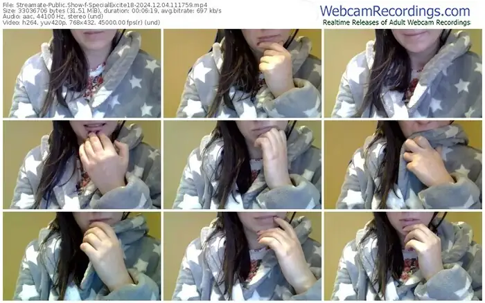 There are a total of 1,485 recordings (261 hours) of SpecialExcite18 from Streamate available below.