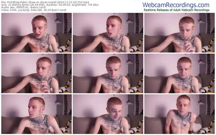 There are a total of 17 recordings (9 hours) of oliver-russell from Flirt4Free available below.