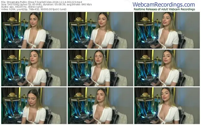 There are a total of 2,378 recordings (920 hours) of ScarletColes from Streamate, MFC and Stripchat available below.