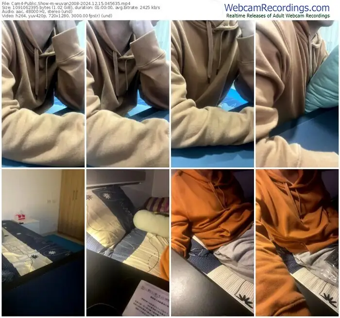 There are a total of 12 recordings (9 hours) of wuvan2008 from Cam4 available below.