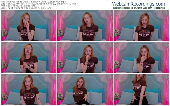 There are a total of 2,819 recordings (1,473 hours) of lina-lewitt from Flirt4Free available below.