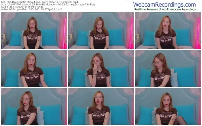 There are a total of 2,819 recordings (1,473 hours) of lina-lewitt from Flirt4Free available below.