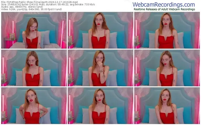 There are a total of 2,819 recordings (1,473 hours) of lina-lewitt from Flirt4Free available below.