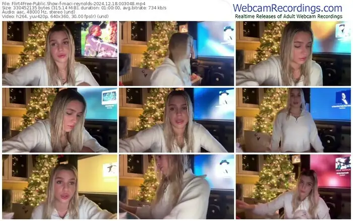 There are a total of 2,383 recordings (1,654 hours) of maci-reynolds from Flirt4Free available below.
