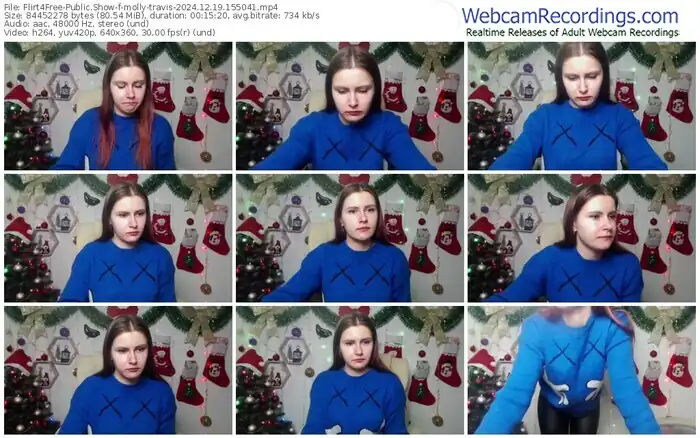 There are a total of 1,093 recordings (543 hours) of molly-travis from Flirt4Free available below.