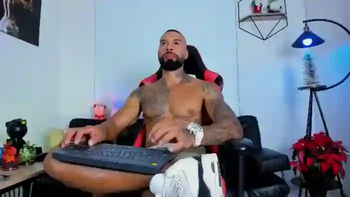 His birthday is February 10th 1996 making him 29 years old, and the average age of models on Flirt4Free is 25—making him one of the older models. His height is 178cm, and his weight is 85kg. He identifies his ethnicity as hispanic. He has a natural pubic hair, muscular body with black eyes and bald bald hair.His body art includes piercings, tattoo(s).