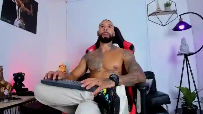 His birthday is February 10th 1996 making him 29 years old, and the average age of models on Flirt4Free is 25—making him one of the older models. His height is 178cm, and his weight is 85kg. He identifies his ethnicity as hispanic. He has a natural pubic hair, muscular body with black eyes and bald bald hair.His body art includes piercings, tattoo(s).