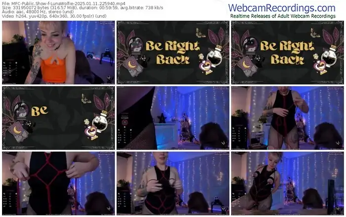There are a total of 1,588 recordings (911 hours) of LunaWolfie from MyFreeCams available below.