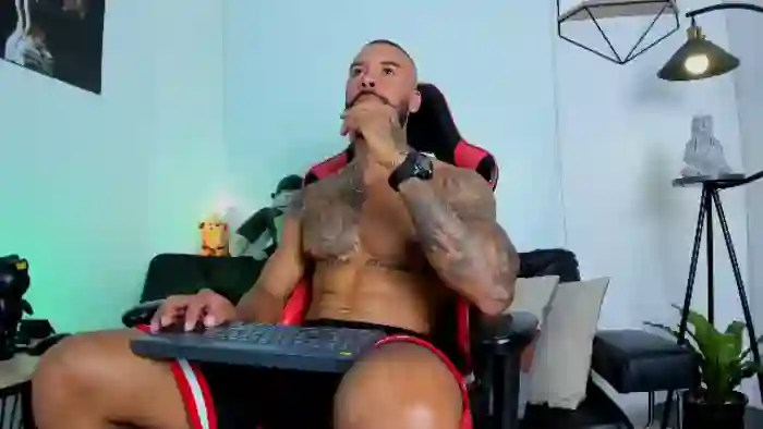 His birthday is February 10th 1996 making him 29 years old, and the average age of models on Flirt4Free is 25—making him one of the older models. His height is 178cm, and his weight is 85kg. He identifies his ethnicity as hispanic. He has a natural pubic hair, muscular body with black eyes and bald bald hair.His body art includes piercings, tattoo(s).