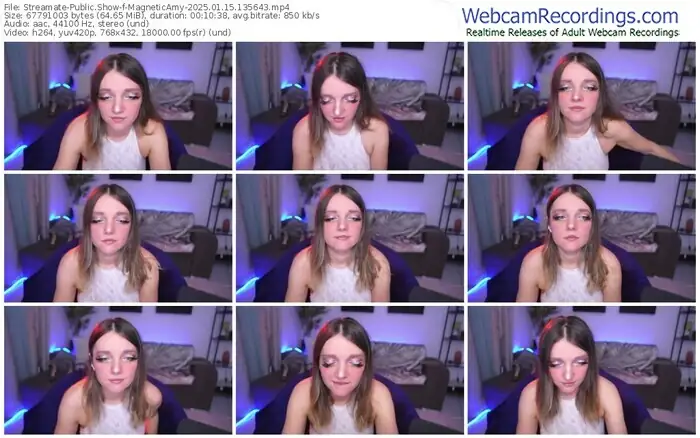 There are a total of 1,711 recordings (610 hours) of MagneticAmy from Streamate, MFC and CamSoda available below.