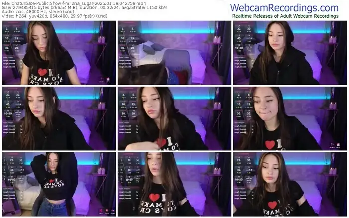 There are a total of 23 recordings (13 hours) of milana_sugar from Chaturbate available below.