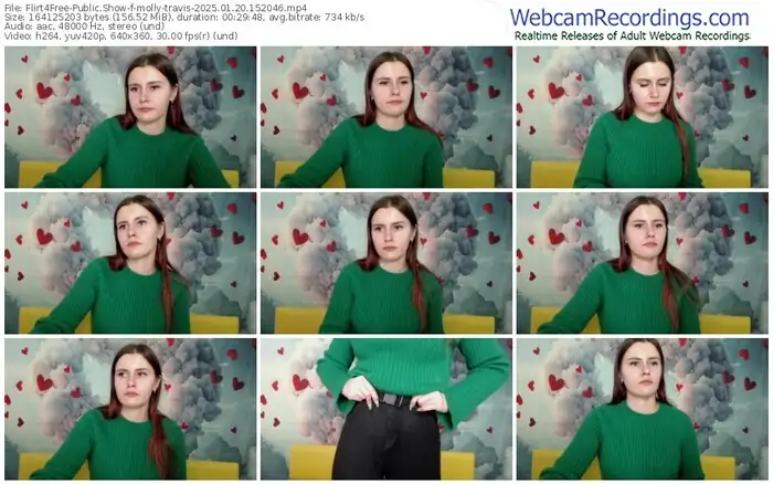 There are a total of 1,093 recordings (543 hours) of molly-travis from Flirt4Free available below.