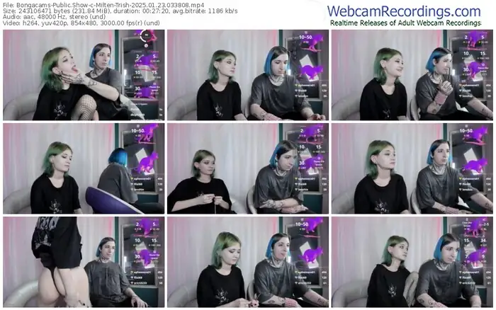 There are a total of 6 recordings (2 hours) of Milten-Trish from Bongacams and Stripchat available below.