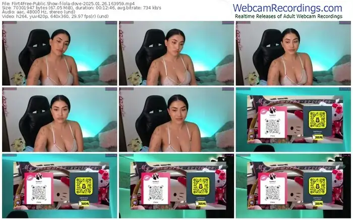 There are a total of 2,019 recordings (987 hours) of lola-dove from Flirt4Free available below.