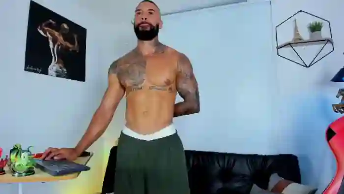 His birthday is February 10th 1996 making him 29 years old, and the average age of models on Flirt4Free is 25—making him one of the older models. His height is 178cm, and his weight is 85kg. He identifies his ethnicity as hispanic. He has a natural pubic hair, muscular body with black eyes and bald bald hair.His body art includes piercings, tattoo(s).