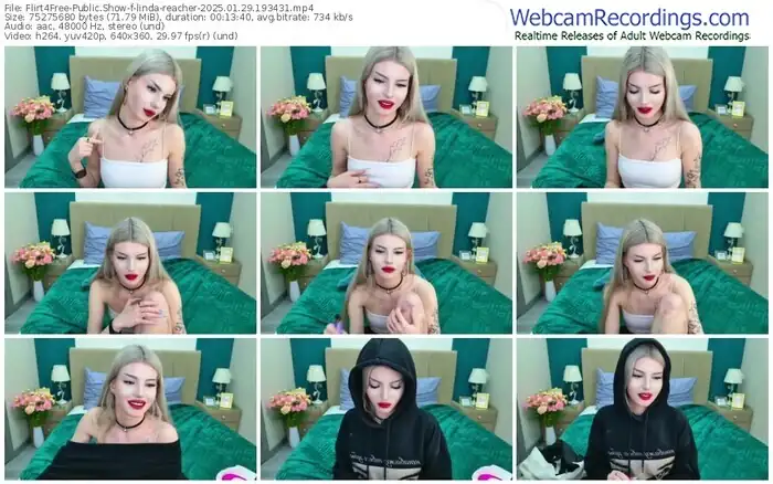 There are a total of 754 recordings (298 hours) of linda-reacher from Flirt4Free available below.