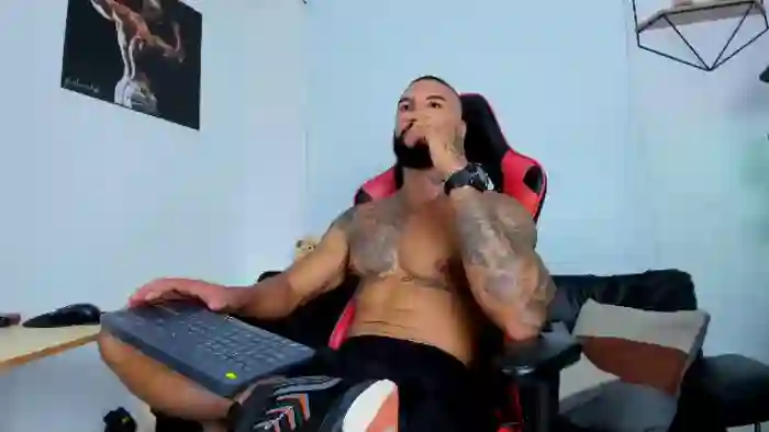 His birthday is February 10th 1996 making him 29 years old, and the average age of models on Flirt4Free is 25—making him one of the older models. His height is 178cm, and his weight is 85kg. He identifies his ethnicity as hispanic. He has a natural pubic hair, muscular body with black eyes and bald bald hair.His body art includes piercings, tattoo(s).