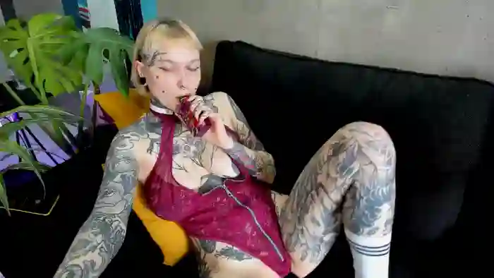 She is 36 years old, and the average age of models on Streamate is 30—making her one of the older models. Her height is 5'5, and her weight is 128 lbs. She identifies her ethnicity as white. She has a c cup size breasts, trimmed pubic hair on an average body with blue eyes and blond hair.Her body art includes tattoos, piercings.