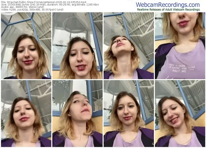 There are a total of 276 recordings (88 hours) of GinevraManson from Stripchat available below.