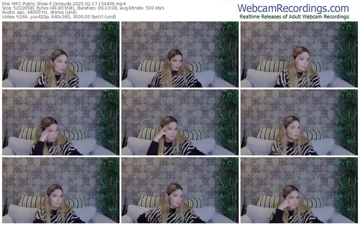 There are a total of 78 recordings (43 hours) of Zenayde from MyFreeCams available below.
