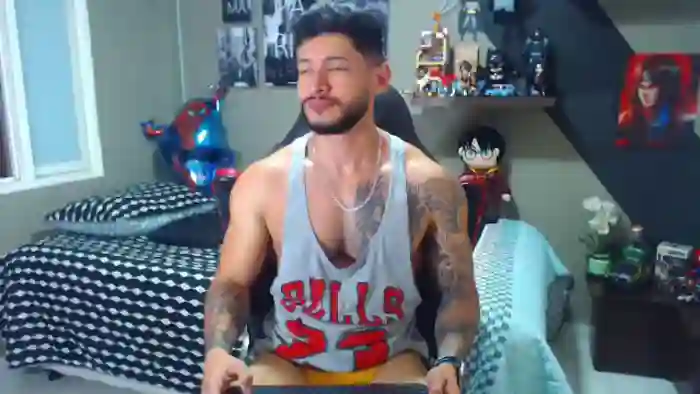 His birthday is November 12th 1996 making him 29 years old, and the average age of models on Flirt4Free is 25—making him one of the older models. His height is 174cm, and his weight is 75kg. He identifies his ethnicity as hispanic. He has a trimmed pubic hair, athletic body with brown eyes and average black hair.His body art includes tattoo(s).
