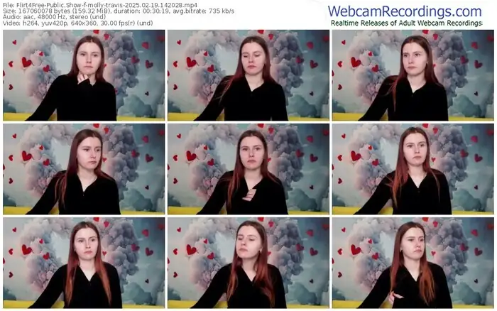There are a total of 1,093 recordings (543 hours) of molly-travis from Flirt4Free available below.