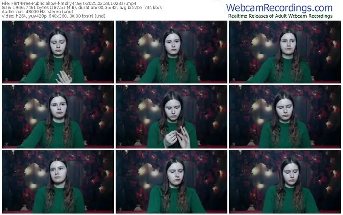 There are a total of 1,093 recordings (543 hours) of molly-travis from Flirt4Free available below.