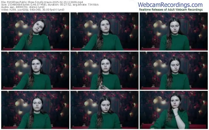 There are a total of 1,093 recordings (543 hours) of molly-travis from Flirt4Free available below.