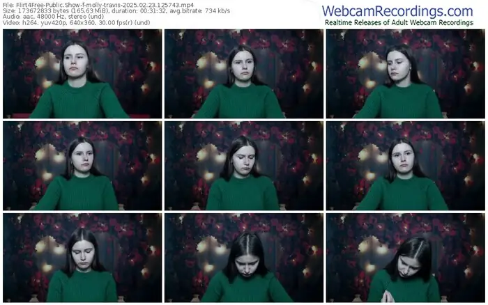 There are a total of 1,093 recordings (543 hours) of molly-travis from Flirt4Free available below.