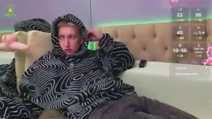His birthday is February 4th 2006 making him 19 years old, and the average age of models on Flirt4Free is 25—making him one of the younger models. His height is 188cm, and his weight is 77kg. He identifies his ethnicity as caucasian. He has a trimmed pubic hair, average body with green eyes and short blonde hair.His body art includes piercings, tattoo(s).