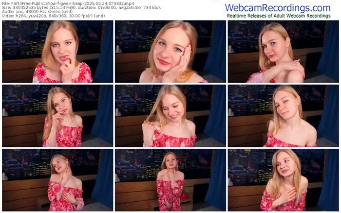 There are a total of 952 recordings (671 hours) of gwen-heap from Flirt4Free available below.