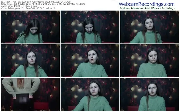 There are a total of 1,093 recordings (543 hours) of molly-travis from Flirt4Free available below.