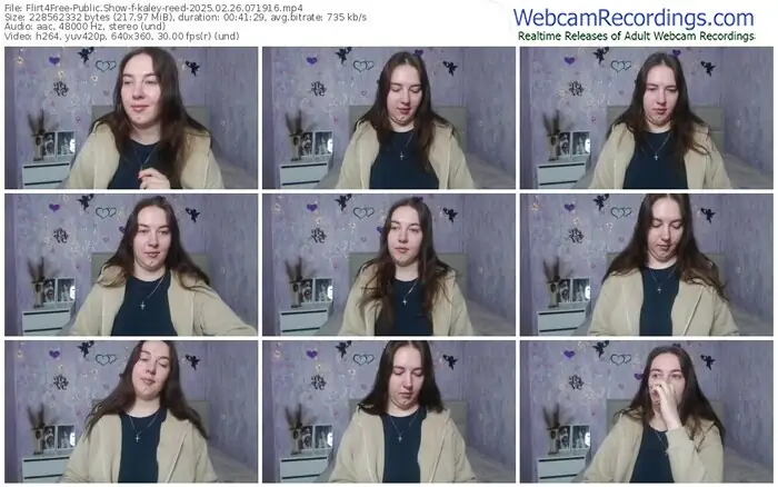 There are a total of 2,295 recordings (1,021 hours) of kaley-reed from Flirt4Free available below.