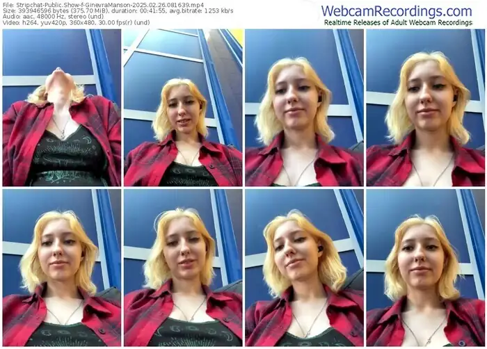 There are a total of 276 recordings (88 hours) of GinevraManson from Stripchat available below.