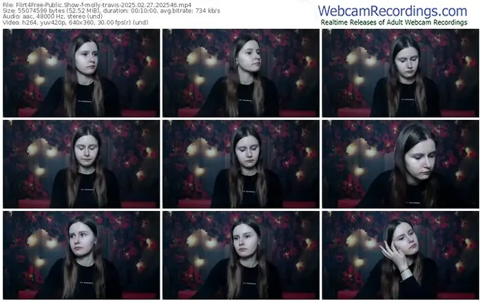 There are a total of 1,093 recordings (543 hours) of molly-travis from Flirt4Free available below.