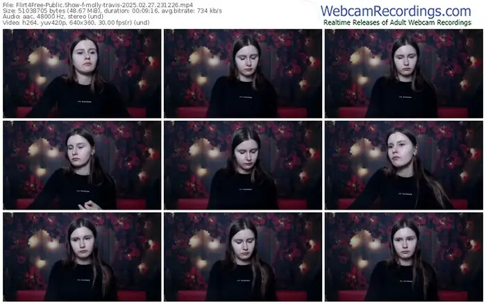 There are a total of 1,093 recordings (543 hours) of molly-travis from Flirt4Free available below.