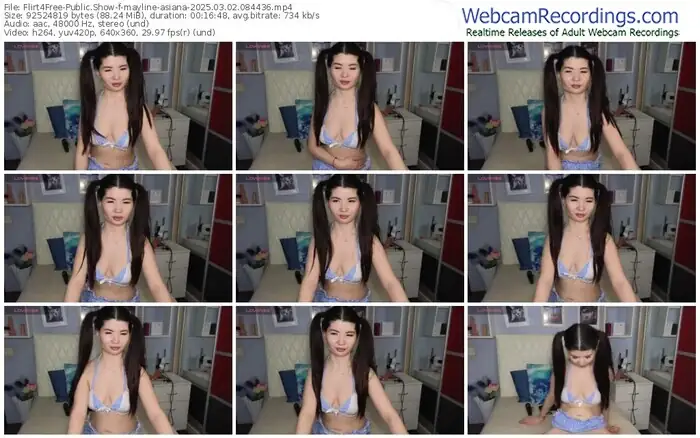 There are a total of 1,302 recordings (416 hours) of mayline-asiana from Flirt4Free available below.