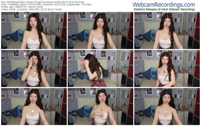 There are a total of 1,302 recordings (416 hours) of mayline-asiana from Flirt4Free available below.
